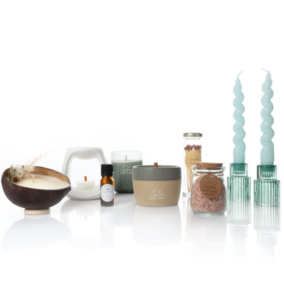 כל נר מגיע במגוון ריחות של שמנים אתרים טהורים, עם פתילי כותנה או עץ